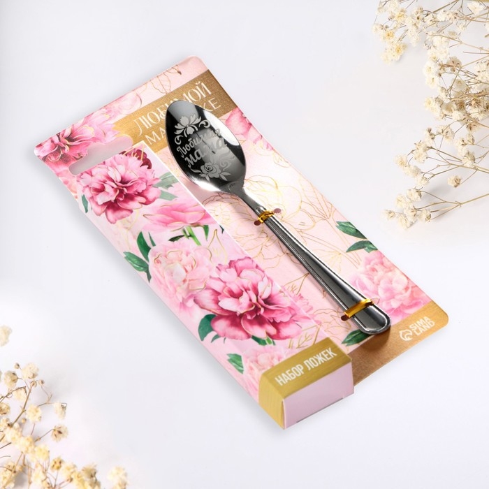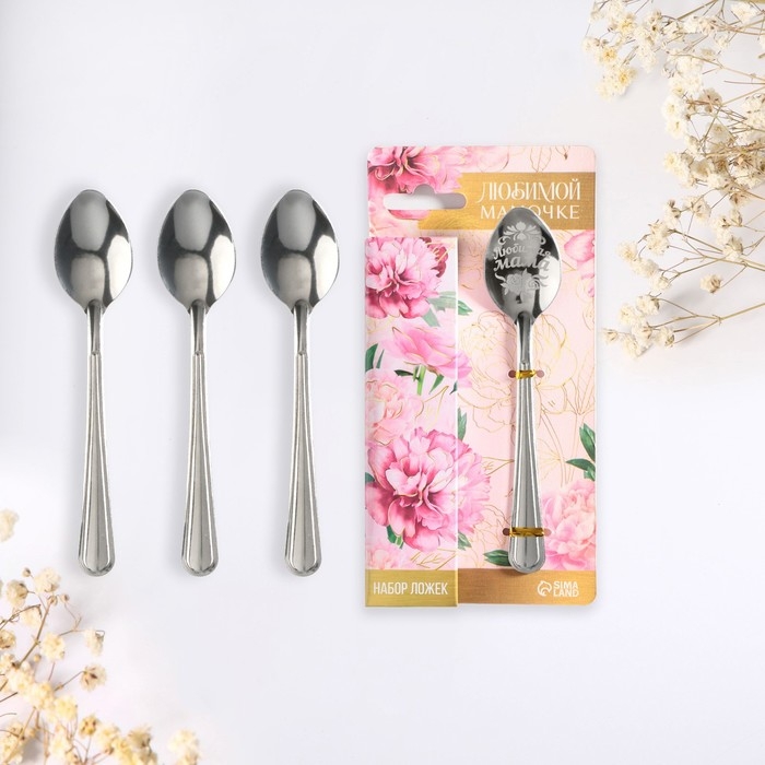Набор чайных ложек на День матери «Любимой мамочке», 4 шт.