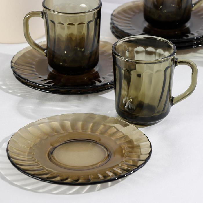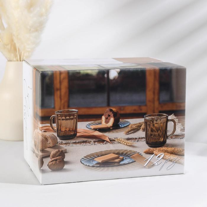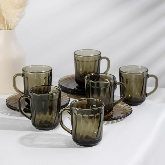 Чайный стеклянный набор «Грация», 12 предметов: кружка 250 мл, 6 шт, блюдце, 6 шт