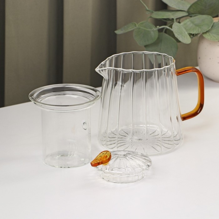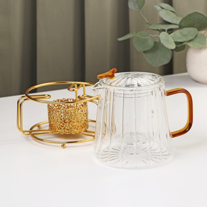 Набор чайный из стекла «Блаженство», 2 предмета: стеклянный чайник 600 мл, 11×12,5 см, подставка 12×6,5 см