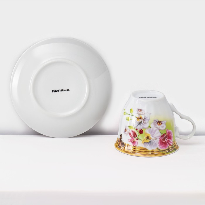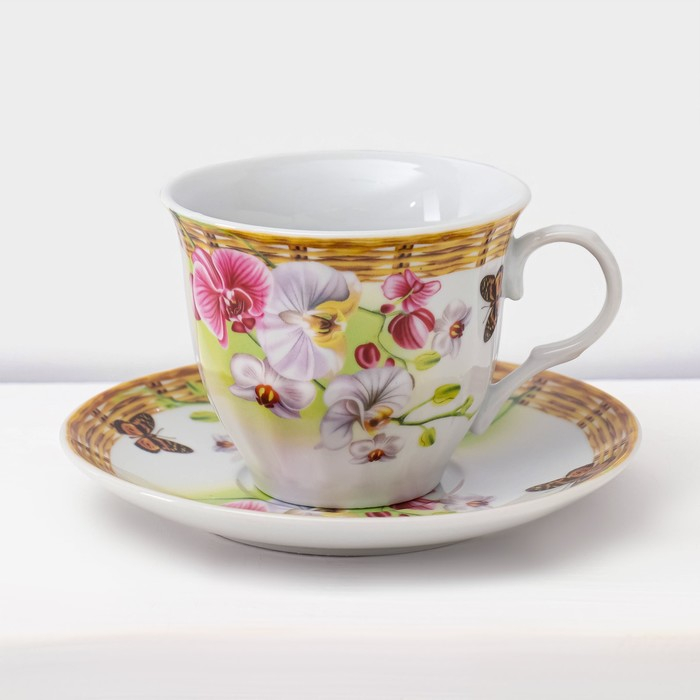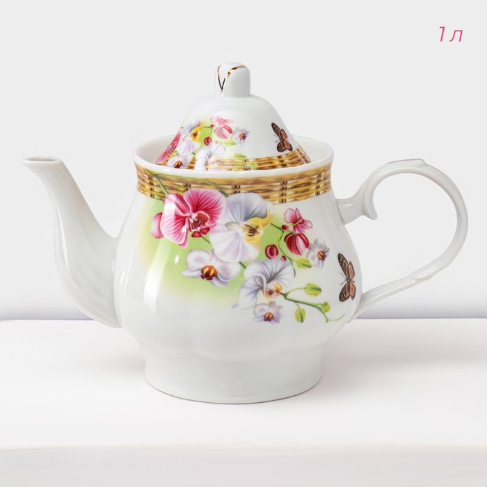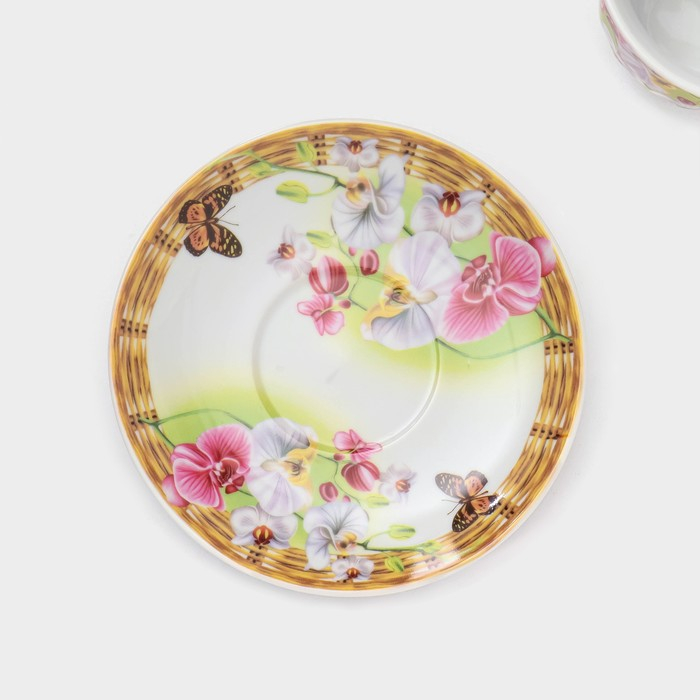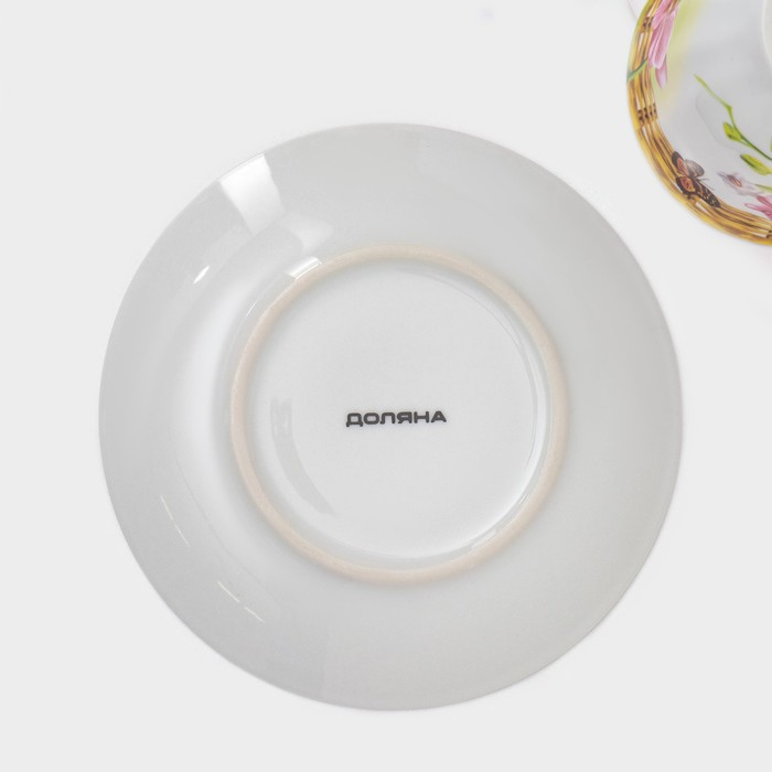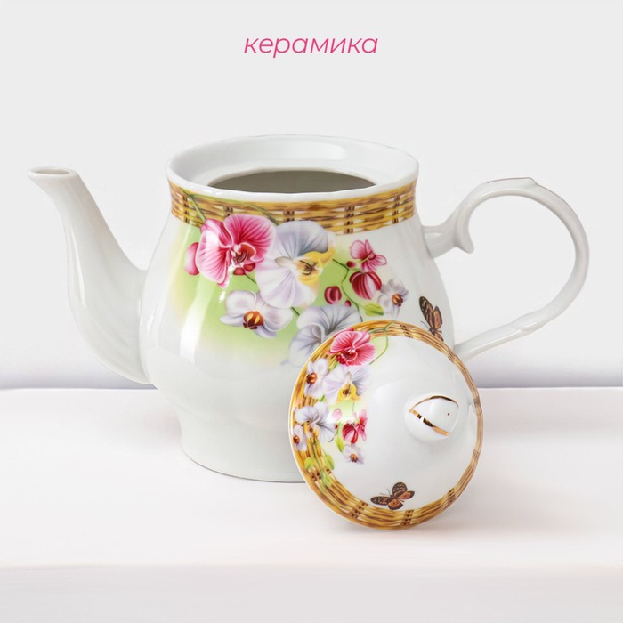 Набор чайный керамический на металлической подставке Доляна «Садовый дворик», 13 предметов: 6 чашек 200 мл, 6 блюдец d=14,1 см, чайник 1 л ㅤ