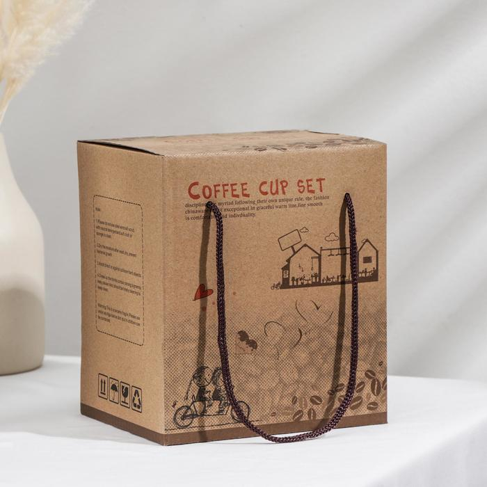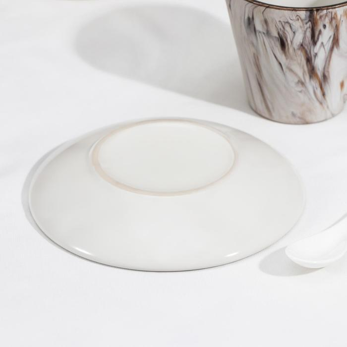 Набор чайный керамический на металлической подставке «Мрамор», 6 предметов: 2 чашки 200 мл, 2 блюдца d=14 см, 2 ложки