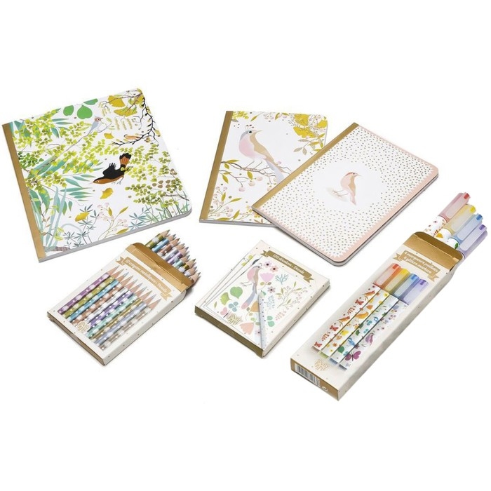 Серия детских канцелярских товаров Lovely Paper включает в себя красочные блокноты, открытки, пеналы, фломастеры и карандаши, цветной скотч, стикеры для записок и другие аксессуары. Изображения на изделиях выполнены в свойственном для Djeco необычном и запоминающемся стиле. Все товары отличаются высоким качеством и прекрасно сочетаются друг с другом.