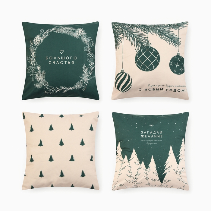 Набор декоративных наволочек Этель "Загадай желание" 40*40 см - 4 шт, 100% п/э, велюр