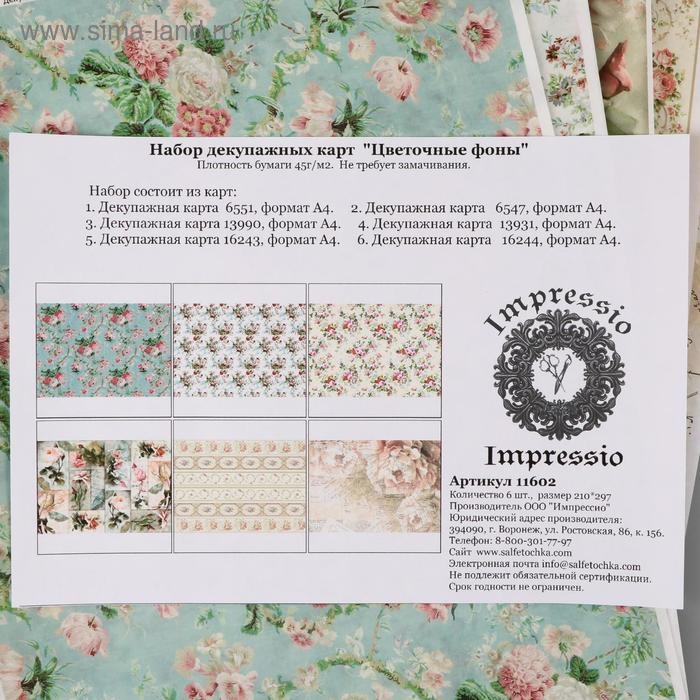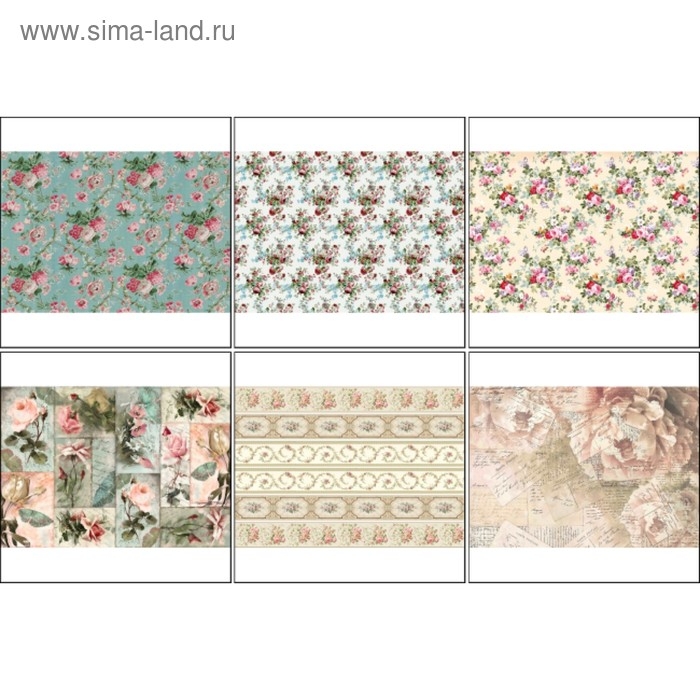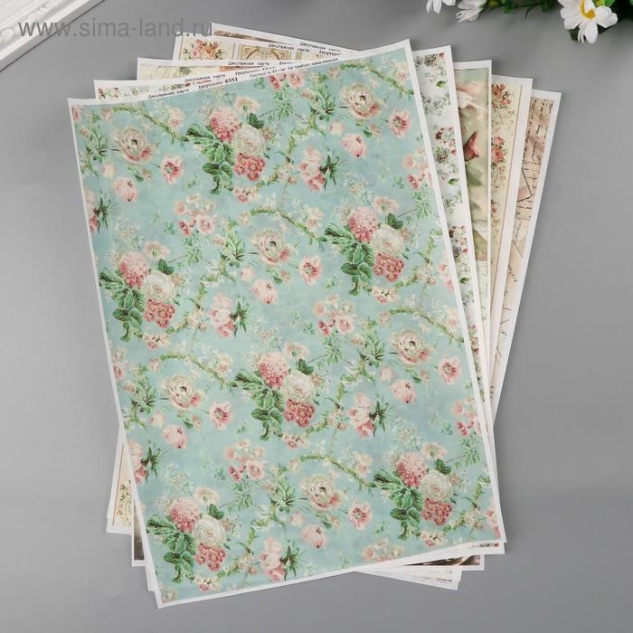 Набор декупажных карт 6 шт "Цветочные фоны" А4, 45 г/м2