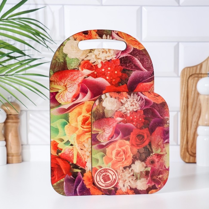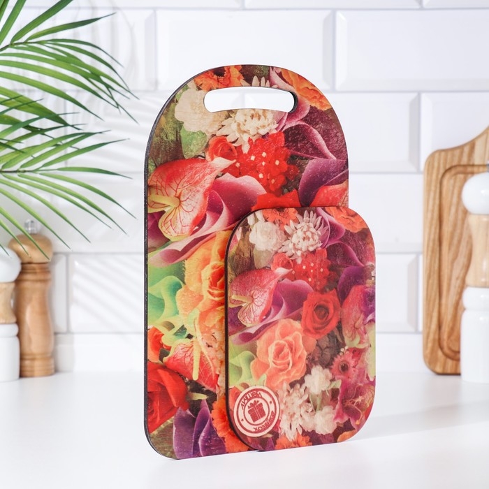 Набор деревянная разделочная доска и подставка под горячее с декором "№3" 29,25х18,75х1,1 см