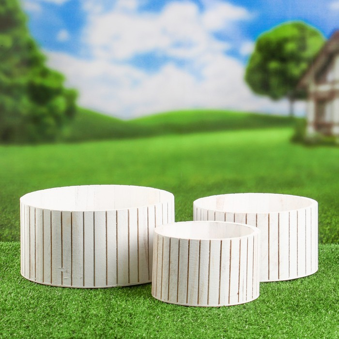 Набор деревянных кашпо, круглых 23х17х11см