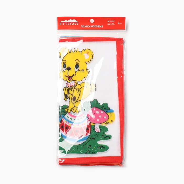 Набор детских носовых платков Etteggy (6шт) 25х25см печать полотн. 66г/м, хл100%