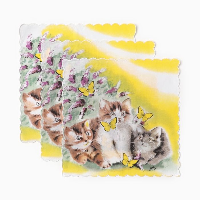 Набор детских носовых платков в коробке ДЖИ, 25х25, 3 шт, цвет МИКС