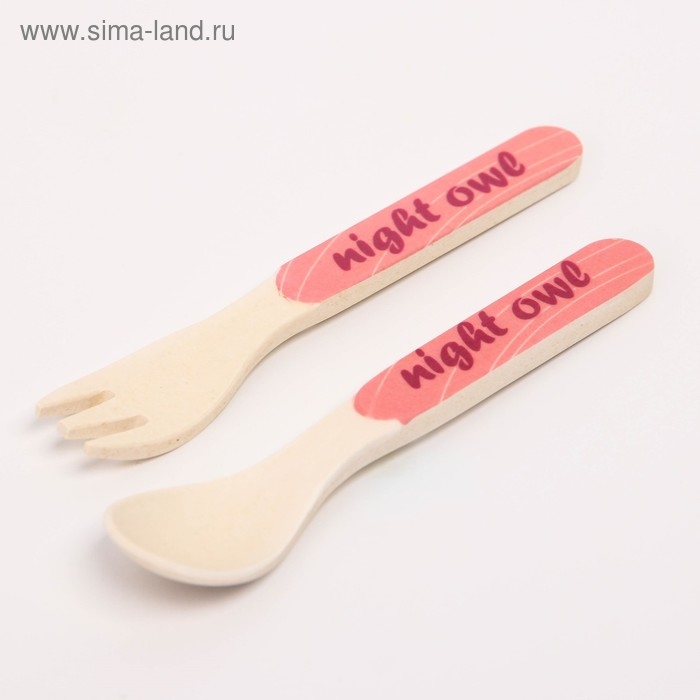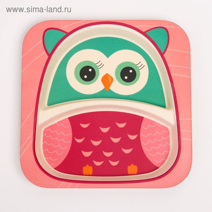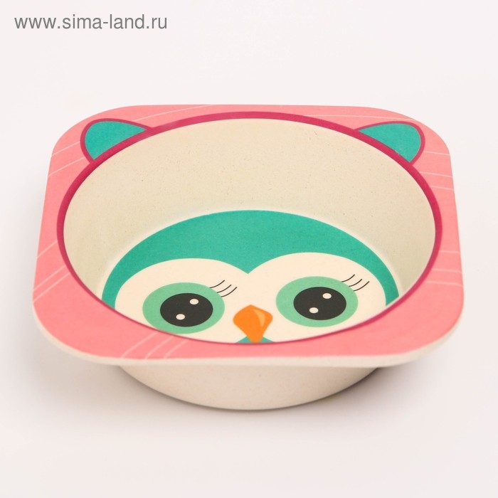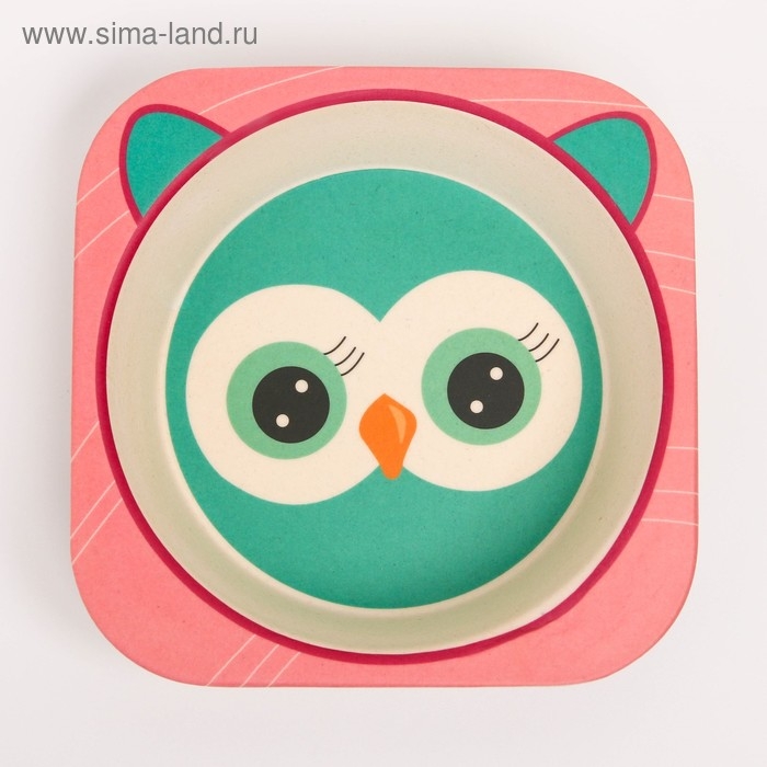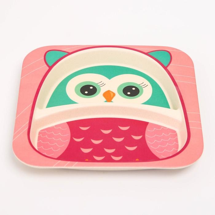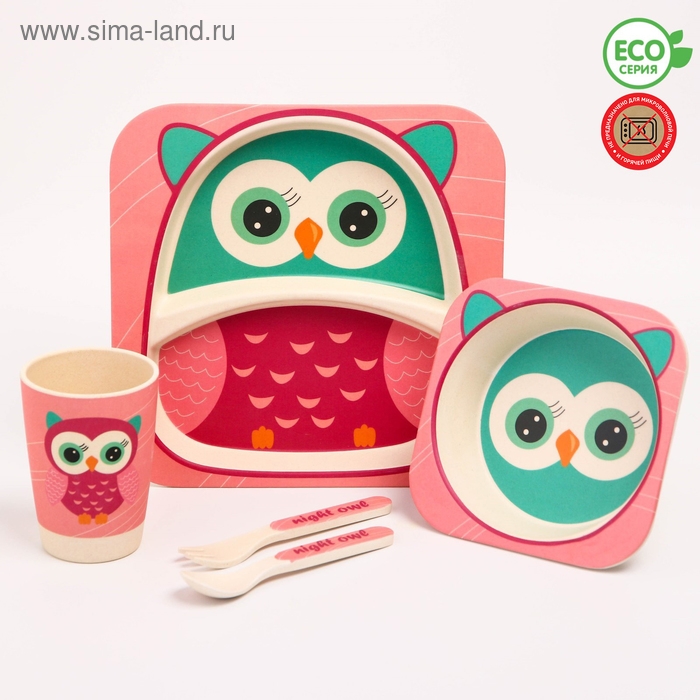 Набор детской бамбуковой посуды «Совушка», тарелка, миска, стакан, приборы, 5 предметов