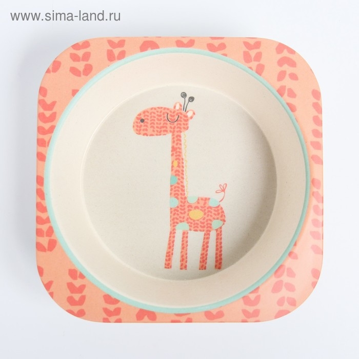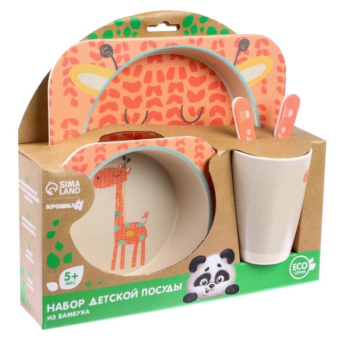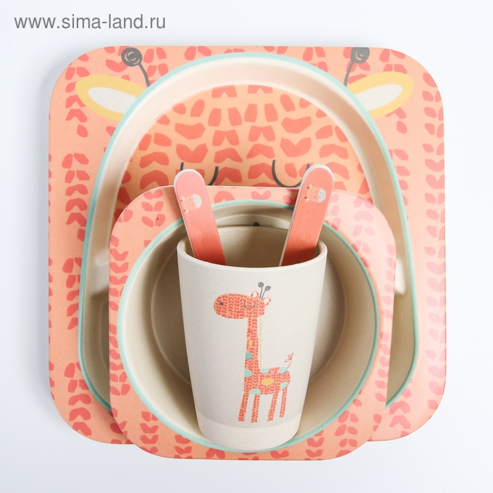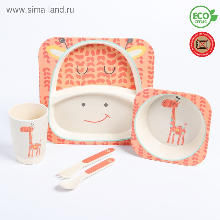 Набор детской бамбуковой посуды «Жираф», тарелка, миска, стакан, приборы, 5 предметов