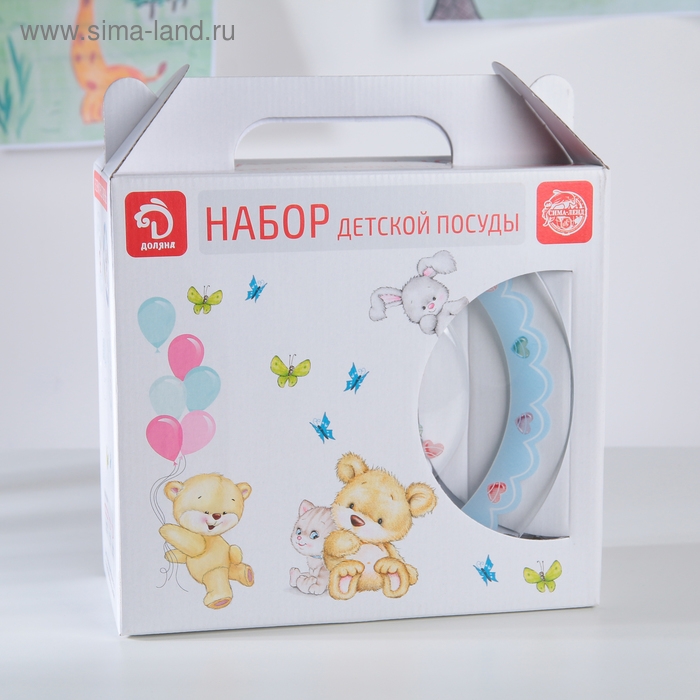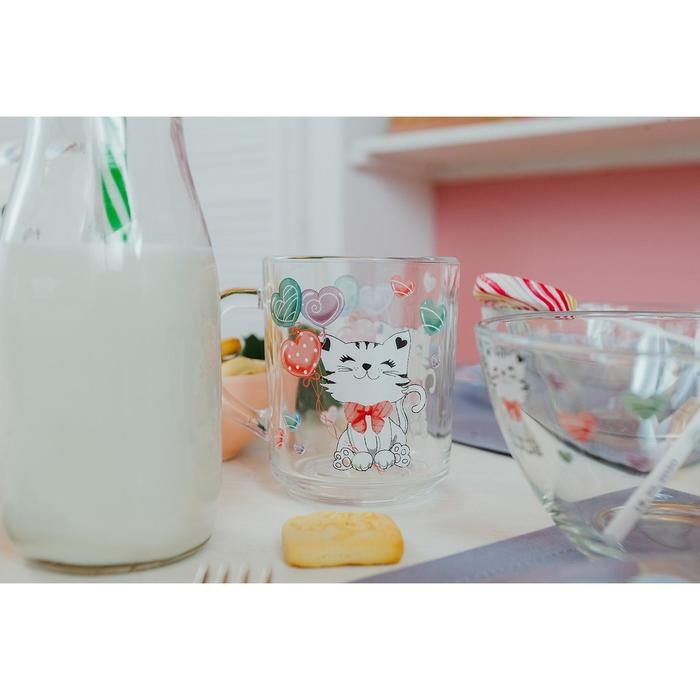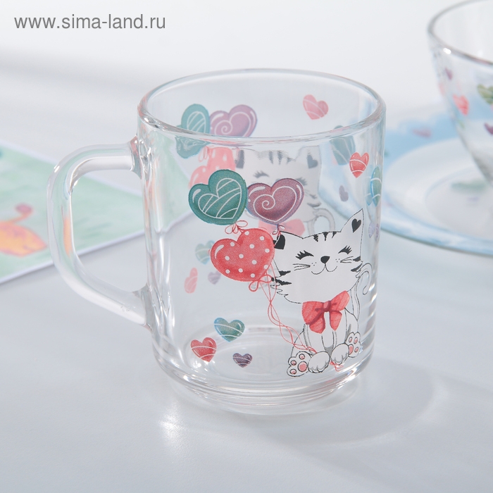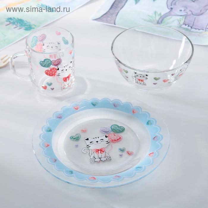 Набор детской посуды Доляна «Котёнок», 3 предмета: кружка 200 мл, салатник 450 мл, тарелка d=20 см
