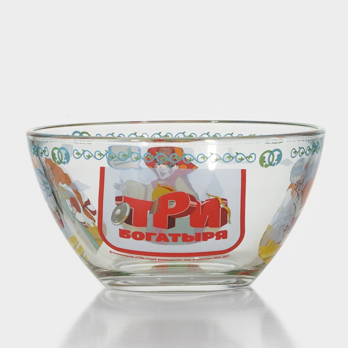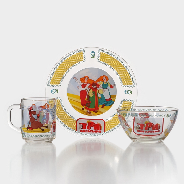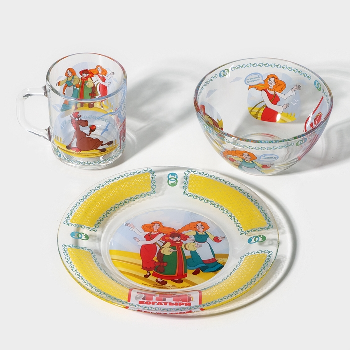 Набор детской стеклянной посуды «Три богатыря. Царевны», 3 предмета: тарелка d=19,7 см, салатник d=13 см, кружка 300 мл