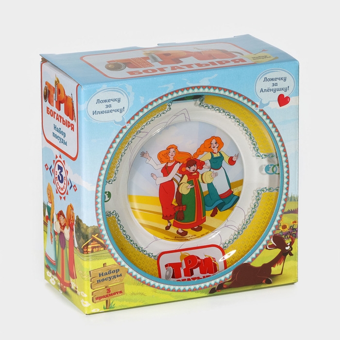 Набор детской посуды «Три богатыря. Царевны» порадует маленького поклонника мультфильма.