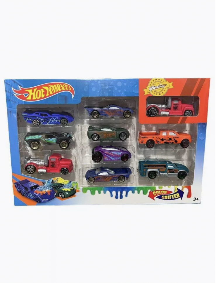 Этот набор включает в себя 10 машинок! Изготовлен из премиальных материалов, таких как ABS пластик (безопасный и гипоаллергенный) и металл. Машинки Hot Wheels выполнены в масштабе 1:64, что делает их превосходным подарком для вашего ребенка. Любители автомобилей обожают машинки Hot Wheels за их уникальный дизайн! Важно отметить, что машины из этого набора Hot Wheels способны менять свой цвет при контакте с теплой водой, что добавляет волшебства и позволит вашему ребенку удивлять друзей этим фокусом. габариты упаковки 30*20*5, вес 270 гр