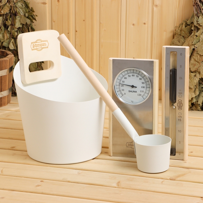 Набор для бани 4 в 1: Шайка 5 л, черпак, часы песочные, термометр V-TZ002