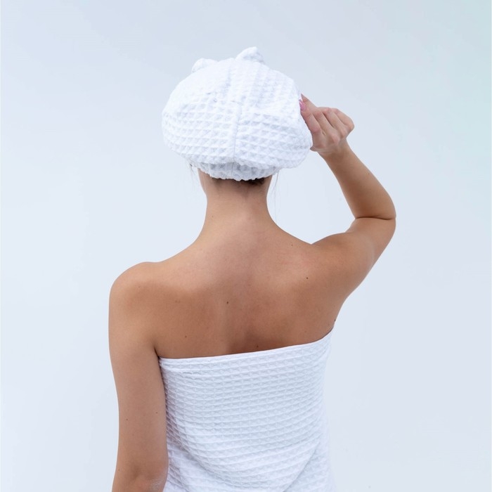 Набор для бани и ванной Этель «Вафля» полотенце 70*140 см+чалма 21*25 см, цв.белый