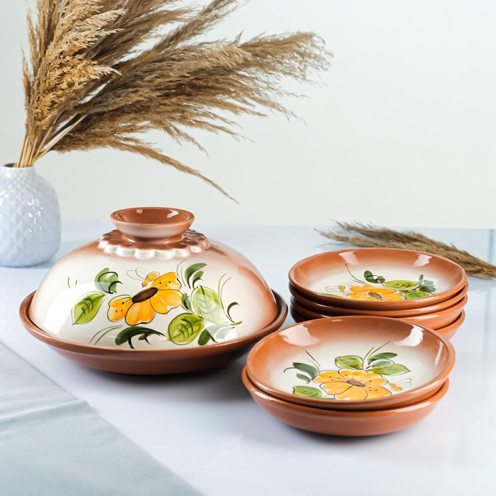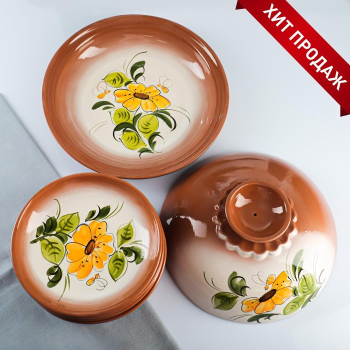 Набор для блинов 7 предметов: 1 шт. блинница, 6 шт. тарелок, с росписью, нектар