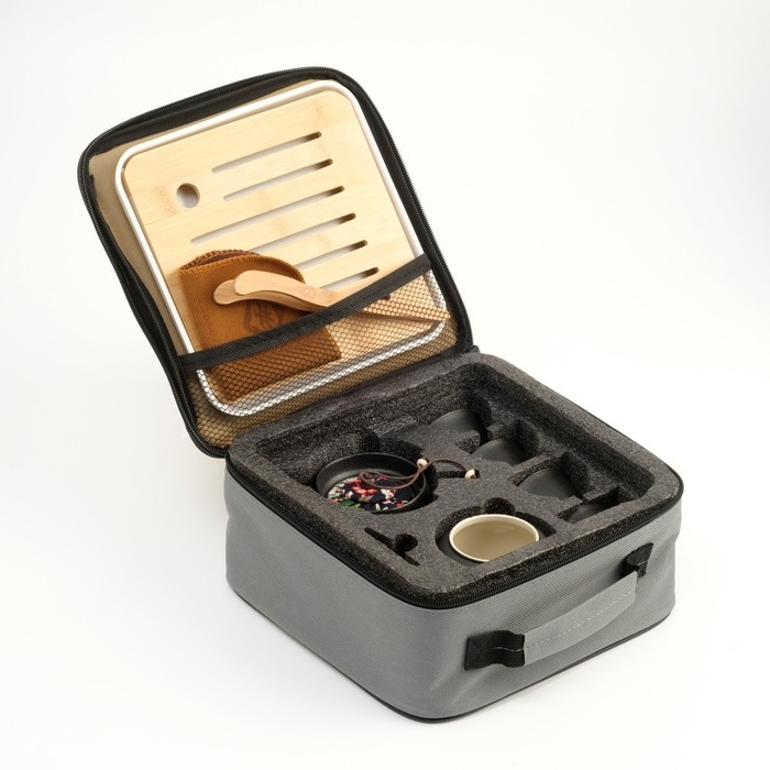 Портативный чайный набор, благодаря компактной сумке с ручкой, удобно брать с собой на природу, в гости, на дачу. Посуда подходит как для торжественных чайных церемоний, так и для повседневного домашнего использования. Изделие изготовлено из прочной керамики, а крышка соединена с ручкой с помощью веревки, чтобы избежать падения.