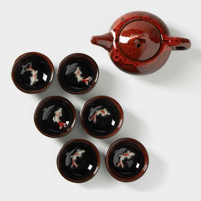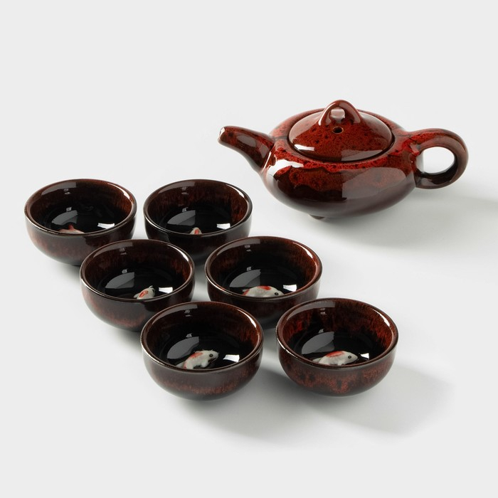 Набор для чайной церемонии керамический «Лунное озеро», 7 предметов: 6 пиал 50 мл, чайник 150 мл, цвет красный