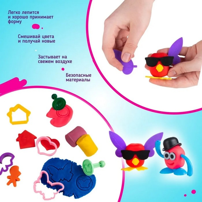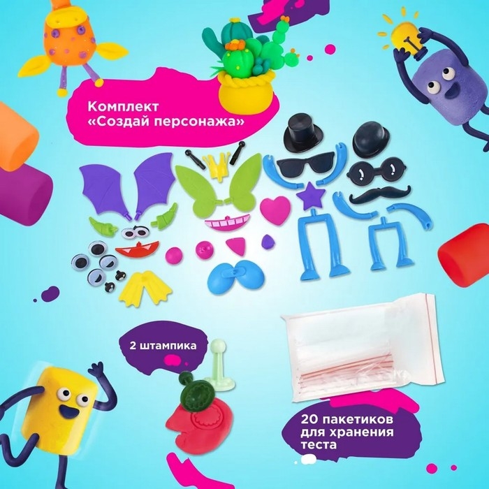 - ыВ наборе есть комплект для создания персонажей с глазками, крылышками, шляпками и многим другим, чтобы игра была ещё увлекательнее.