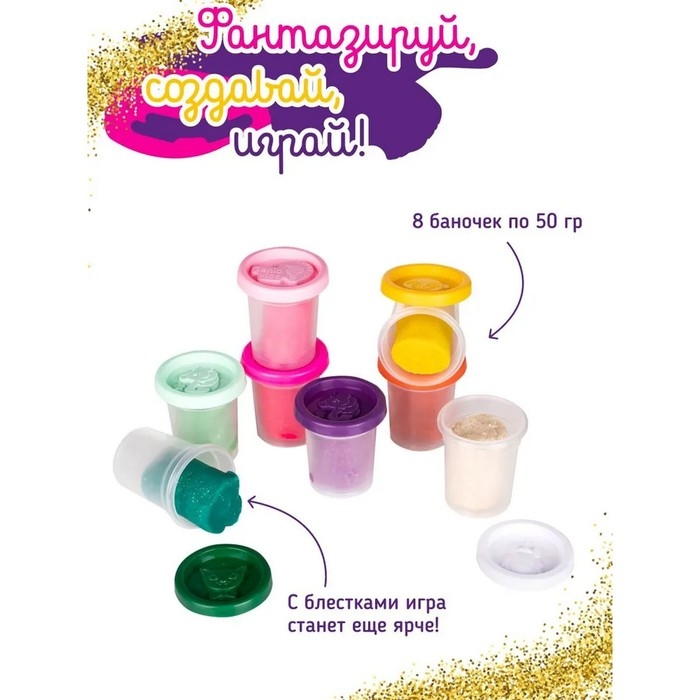 Набор для детской лепки «Тесто-пластилин с блестками, 8 цветов»