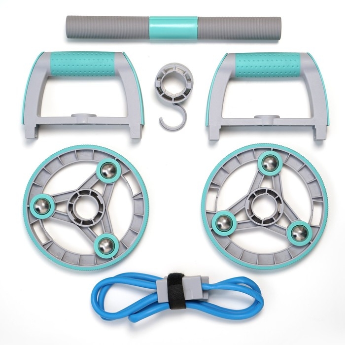 Набор для фитнеса ONLYTOP: ролик, упор для пресса, эспандер грудной, цвет бирюзовый