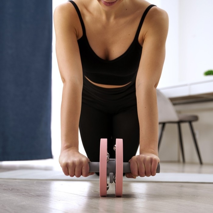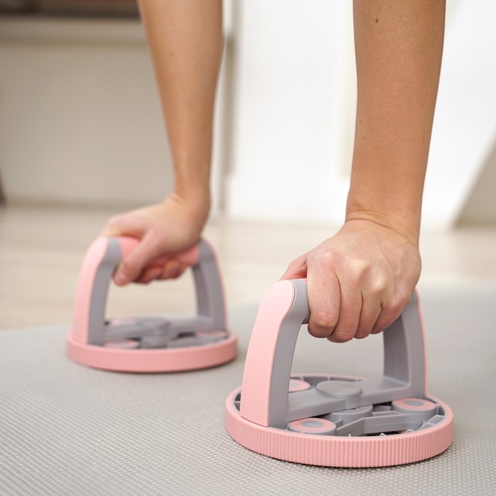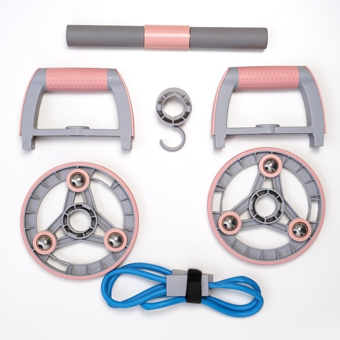 Набор для фитнеса ONLYTOP: ролик, упор для пресса, эспандер грудной, цвет розовый