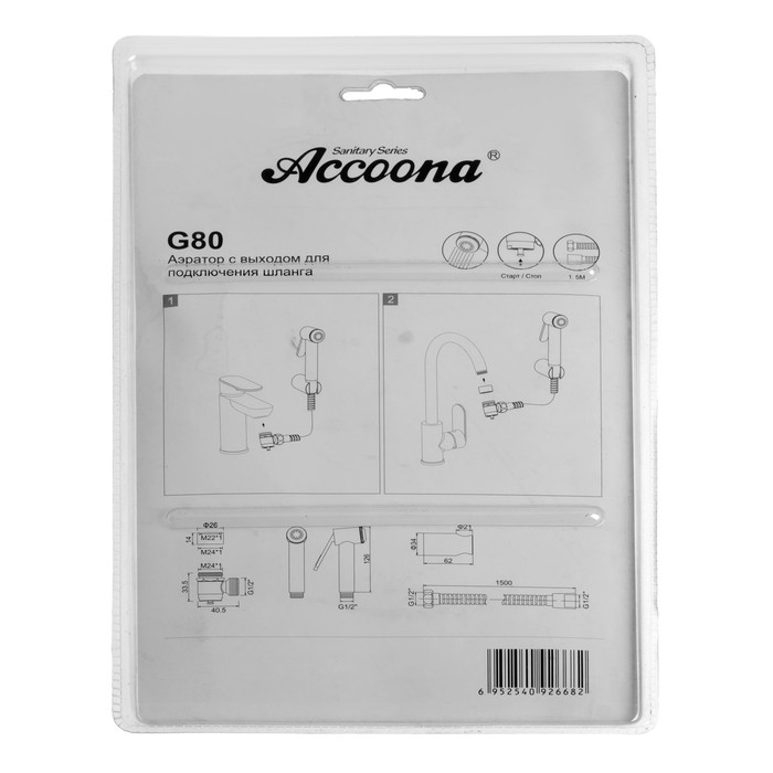 Набор для гигиенического душа с аэратором-переключателем (лейка, шланг и держатель) Accoona