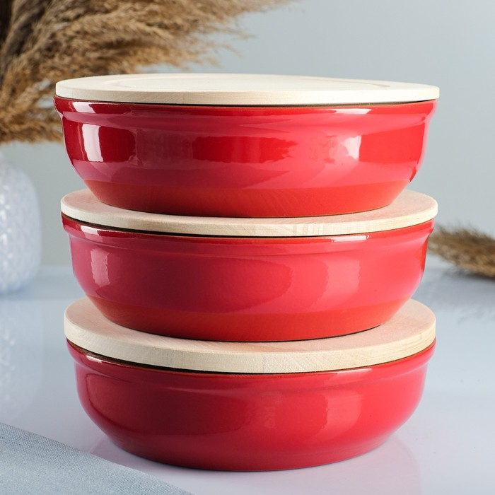 Набор для холодца "Вятский №3" (3 емкости / 1л. + 3 деревянные крышки), красный