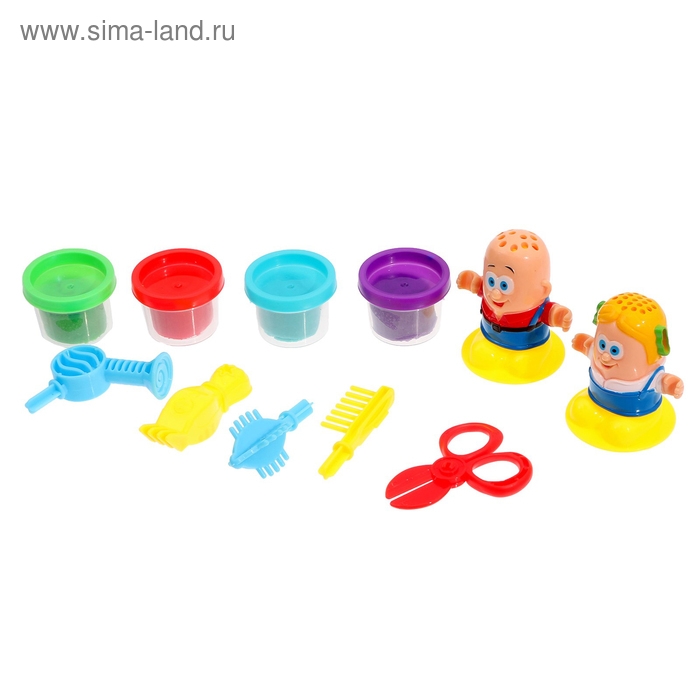 Набор для игры с пластилином «Весёлые причёски», 4 баночки, в пакете