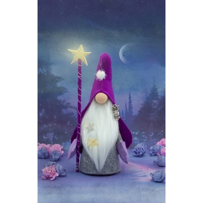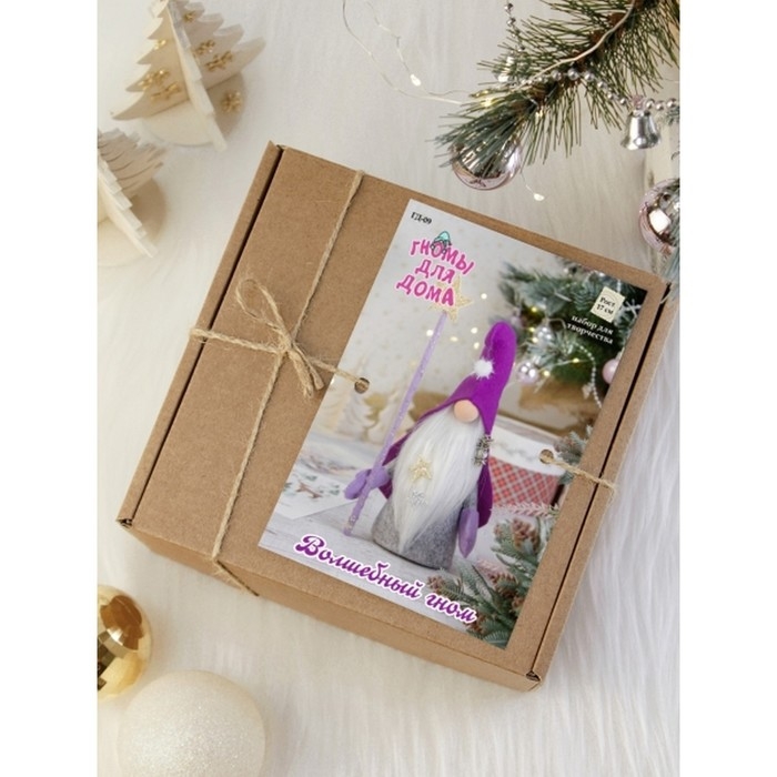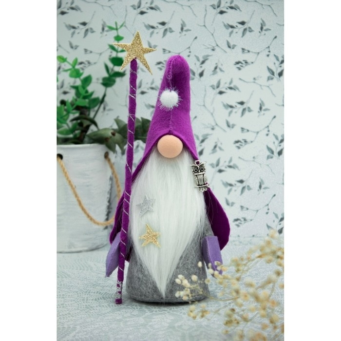 С набором для шитья у вас получится своими руками создать мягкую игрушку в виде волшебного гнома с посохом, который украсит интерьер вашего дома. Внутри набора вы найдёте необходимые материалы и инструкцию, в которой подробно написано, как сделать игрушку.