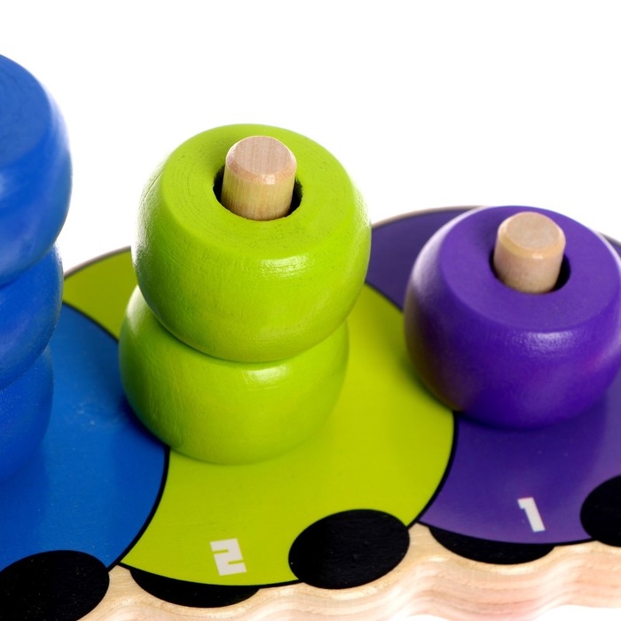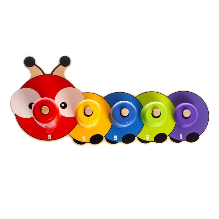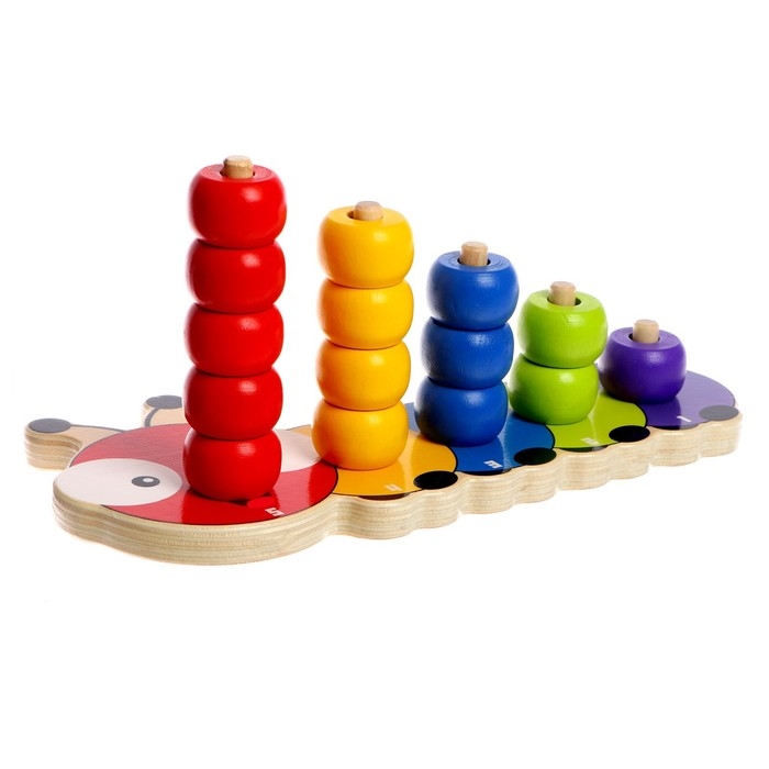 Развивающий набор выполнен в виде дружелюбной гусеницы, поэтому понравится ребёнку. Кроха будет учиться различать цвета и считать. Такая игра разовьёт воображение, логическое мышление, визуальное восприятие, мелкую моторику.