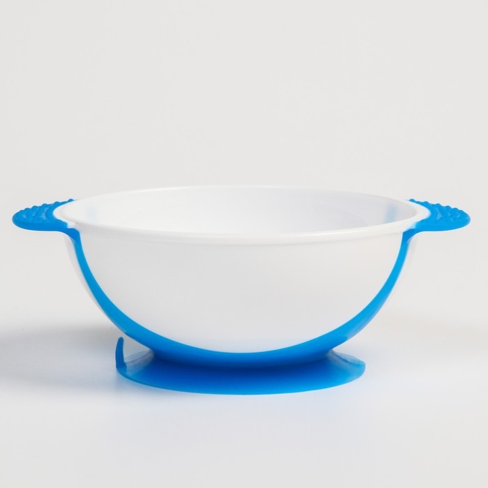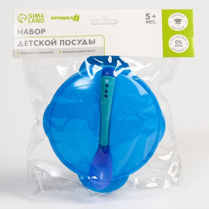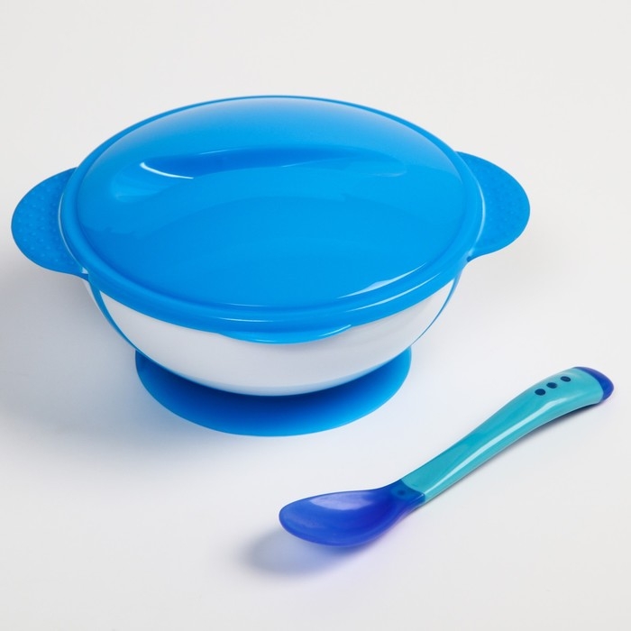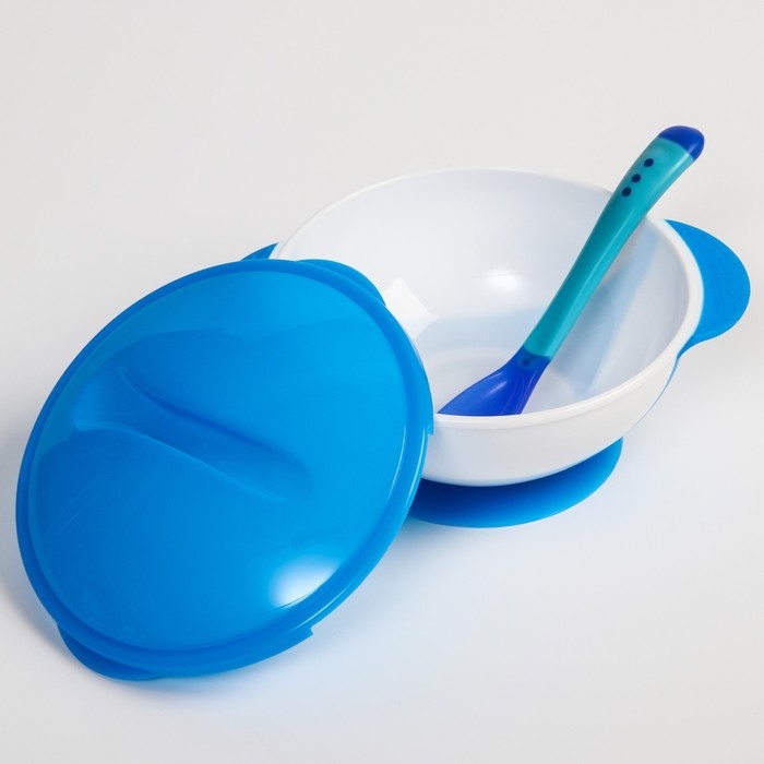 Набор для кормления: миска на присоске 340 мл., с крышкой, термоложка, цвет синий