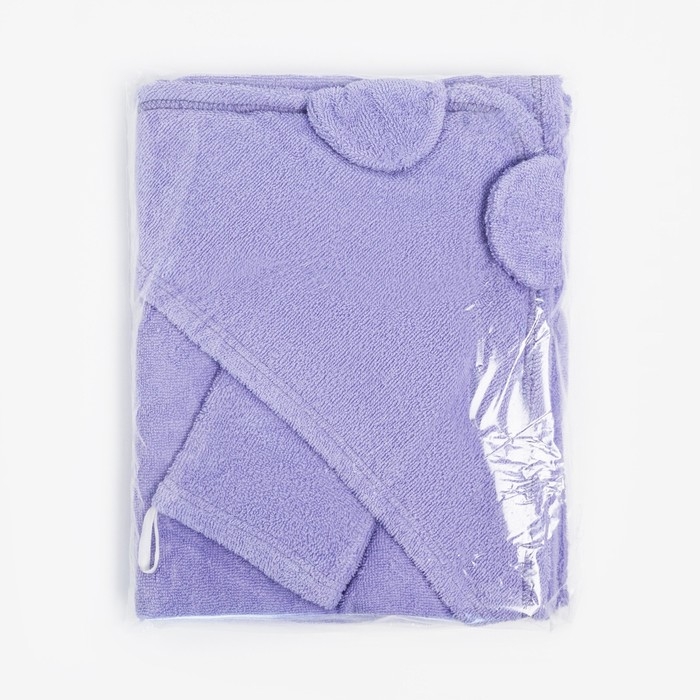 Набор для купания Крошка Я (полотенце-уголок 85*85±2см,полотенце 40*55см, рукавица), цвет сиреневый