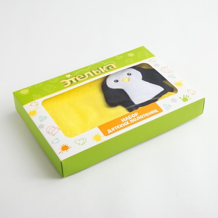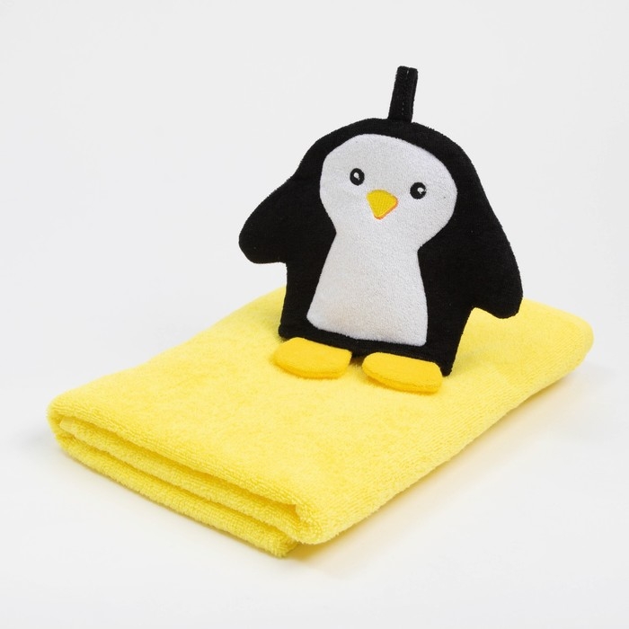 Набор для купания «Пингвинчик» полотенце 70*130 см с мочалкой