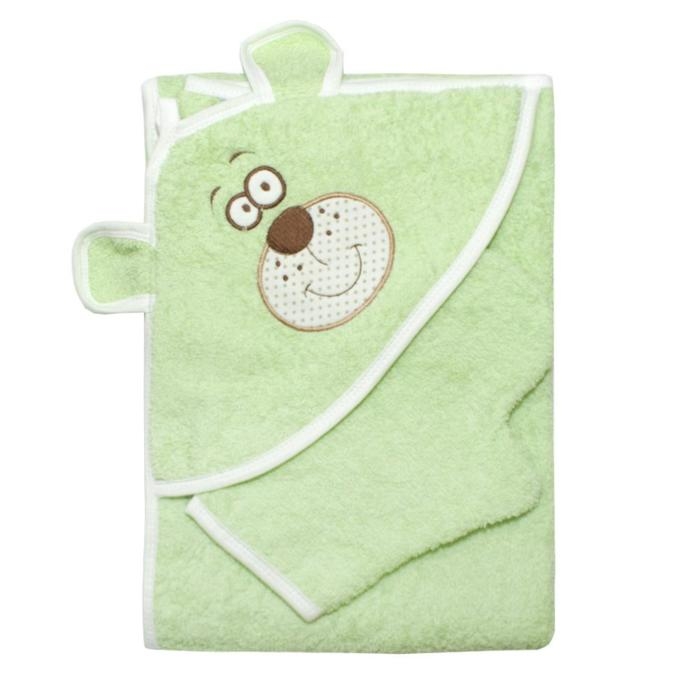 Набор для купания (полотенце-уголок, рукавица) с вышивкой «Мишка», размер 100х110 см, цвет зелёный