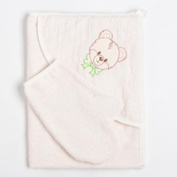 Набор для купания (уголок + рукавичка), молочный, махра 340г/м