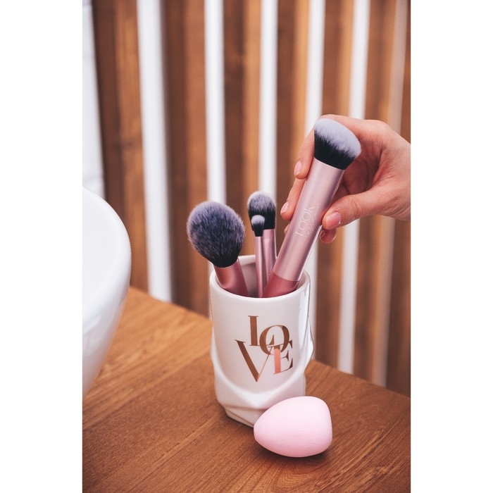 Кисти выполнены из высококачественного синтетического волокна. Кисти мягкие, гипоаллергенные и не вызывают раздражения. Не осыпаются, хорошо и равномерно растушёвывают косметику.