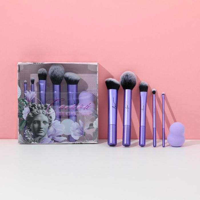 Набор кистей для макияжа «Франция», 7 предметов, на кнопке, цвет бежевый/розовый