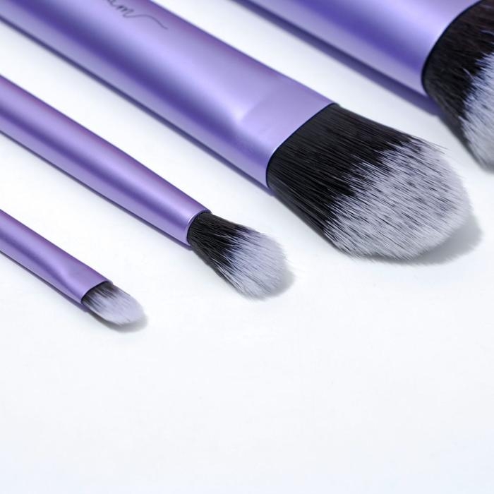 Кисти выполнены из высококачественного синтетического волокна. Кисти мягкие, гипоаллергенные и не вызывают раздражения. Не осыпаются, хорошо и равномерно растушёвывают косметику.