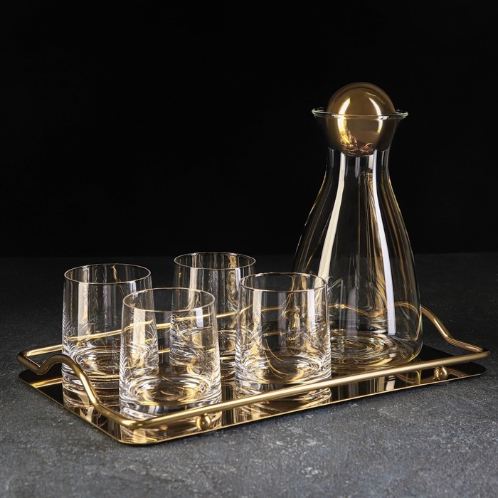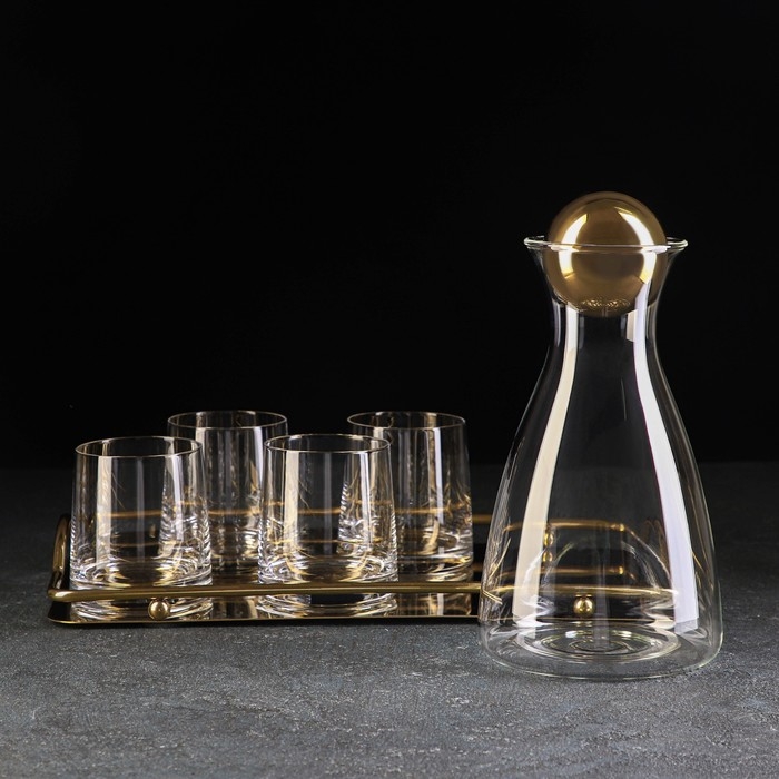 Набор для напитков из стекла Magistro «Голден», 5 предметов: кувшин 1 л, 4 кружки 350 мл, цвет золотой