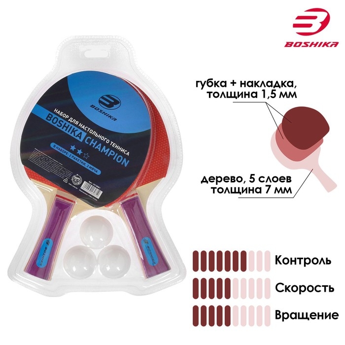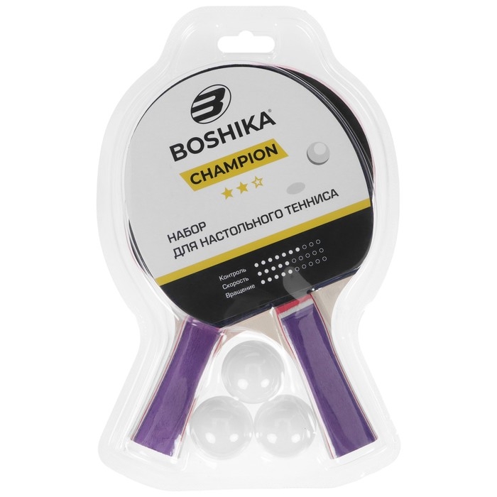 Набор для настольного тенниса BOSHIKA Championship: 2 ракетки, 3 мяча, 2 звезды