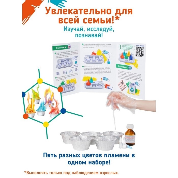ВНИМАНИЕ! Дети могут использовать набор для опытов «Цветные огоньки» только под присмотром взрослых.