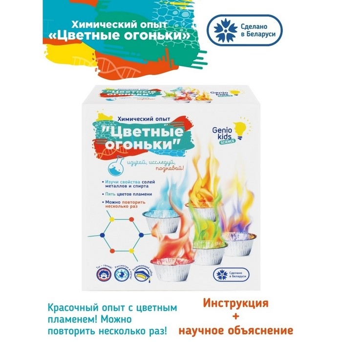 Набор для опытов «Цветные огоньки» — это отличный способ для детей познакомиться с основами химии в игровой форме. Он поможет развить у ребёнка любознательность, воображение, творческие способности. Также ребёнок узнает о химических свойствах веществ.