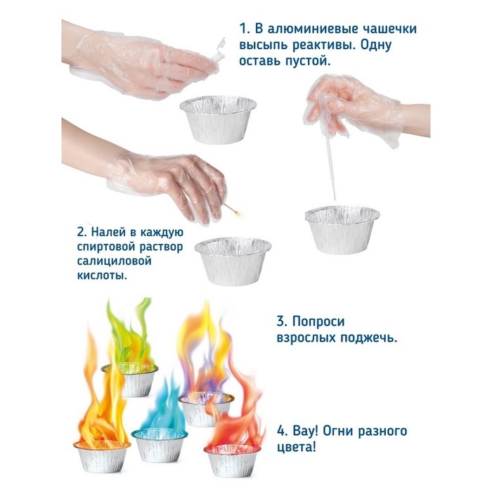 «Цветные огоньки» — это увлекательный опыт, который никого не оставит равнодушным. С помощью этого опыта ребёнок узнает о химических свойствах веществ и сможет создать маленькие разноцветные костры!