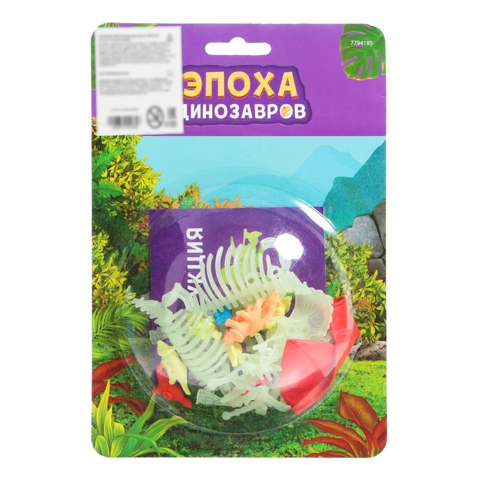 Набор для опытов «Эпоха динозавров» поможет ребёнку изучить строение тела динозавра, создать модель скелета, которая светится в темноте, а также выполнит 1 простой опыт.