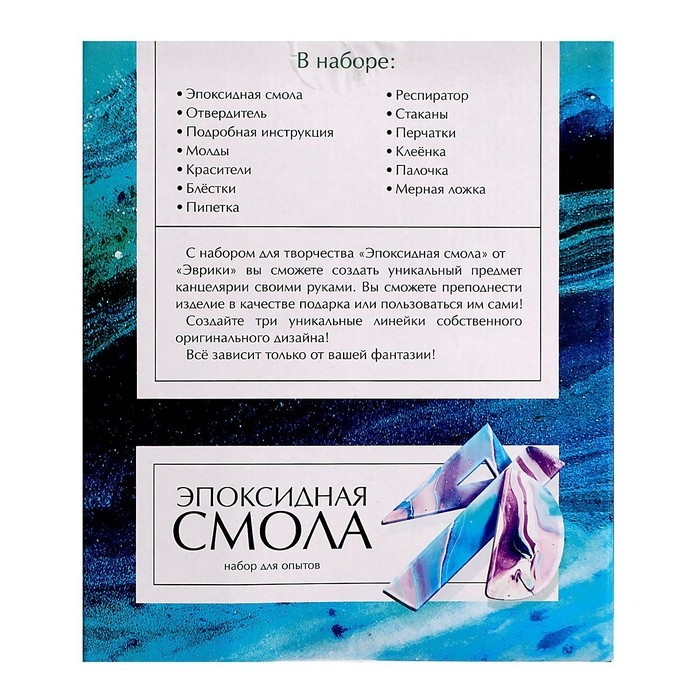Набор для опытов «Эпоксидная смола» позволит своими руками создать стильные канцелярские линейки. Готовые изделия станут не только дополнением к рабочему месту, но и приятным подарком для родных и друзей. В комплекте есть всё необходимое для того, чтобы создать 4 линейки.
