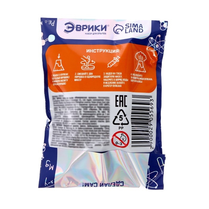 С набором торговой марки «Эврики» ребёнок узнает, как извергаются вулканы, и попробует самостоятельно создать мини-взрыв с помощью соды и лимонной кислоты.