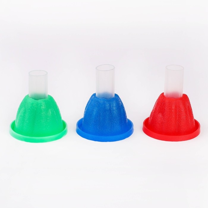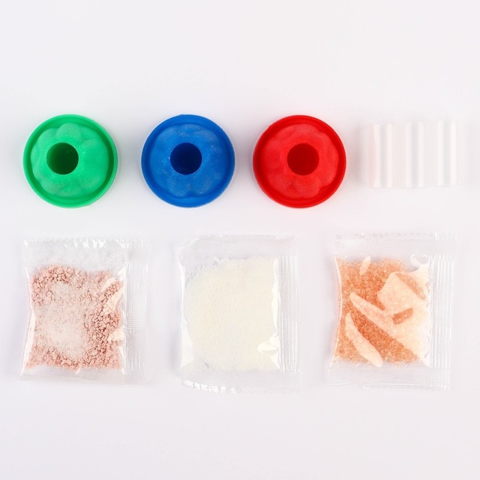 - Засыпьте в вулкан содержимое одного из трёх пакетиков с реактивами.