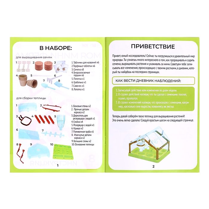 - Поставьте теплицу в тёплое место на несколько дней, откройте крышку теплицы для вентиляции. После чего начинайте вести дневник наблюдений. Вы найдёте его в конце инструкции.